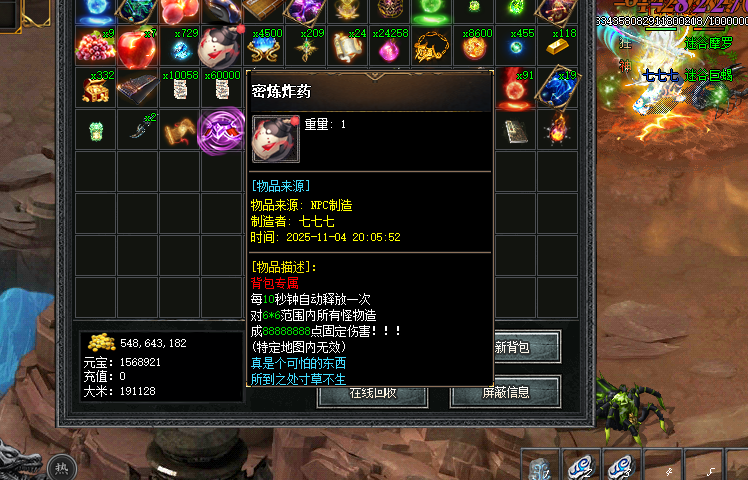 开区领取免费福利:自动拾取,自动回收,自动挂机,人物爆率+100,群体蛊毒术