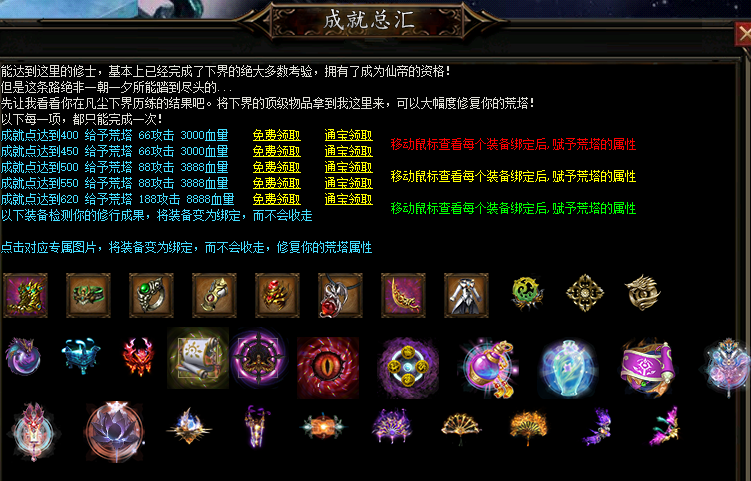 (独有成就系统-四大陆解锁,会帮您核实,自己体验的游戏进度,并给予玩家大量强力属性)