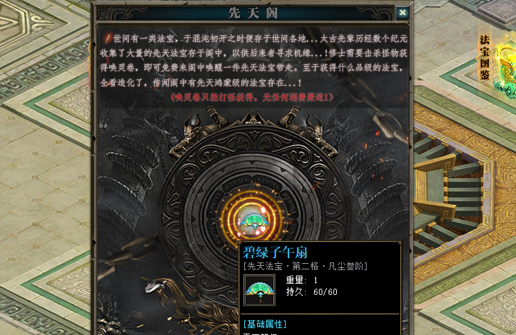 法宝篇:强力道具。只有靠开荒与打到的唤灵卷轴兑换。