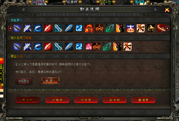 上线泡点到30级,领取完礼包后,到门派地图,找到地图中间的神秘人,选择职业!
