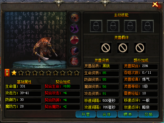 做到以上步骤后,即可召唤出幻兽和阵法,(记得人物和灵兽合体)去前期地图打