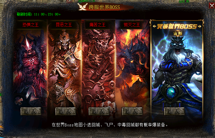 前期地图中的绿色、紫色BOSS都不要放过,运气好前期很容易凑齐装备。