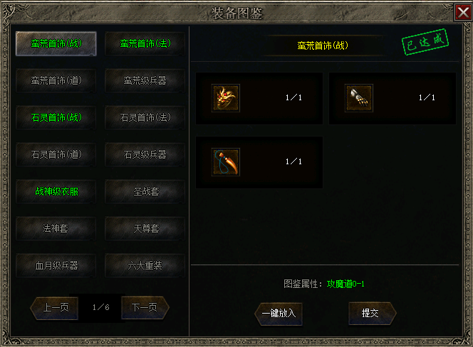 打到多余的装备不要全部分解,点右上角的“图鉴”填充,可大幅度提升属性。
