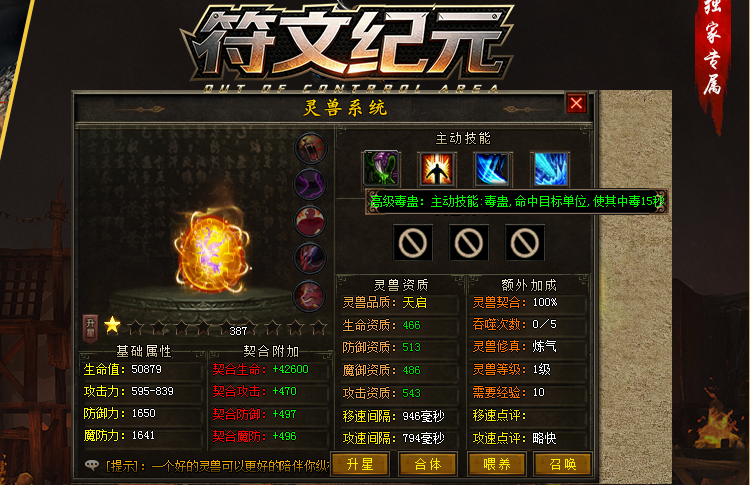 召唤圣兽需要抽取技能获得 可召唤圣兽