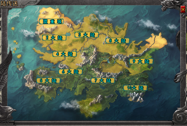 一共十个大陆陆续更新,每个大陆分别有不同的功能及玩法