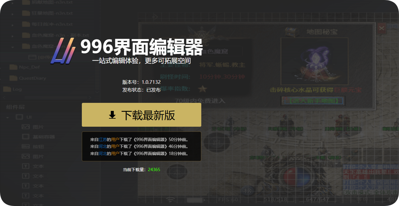 1. 推出商城模块,在里面可以使用996界面编辑器提供的素材进行一键换服以及使用自定义框体的素材进行编辑。