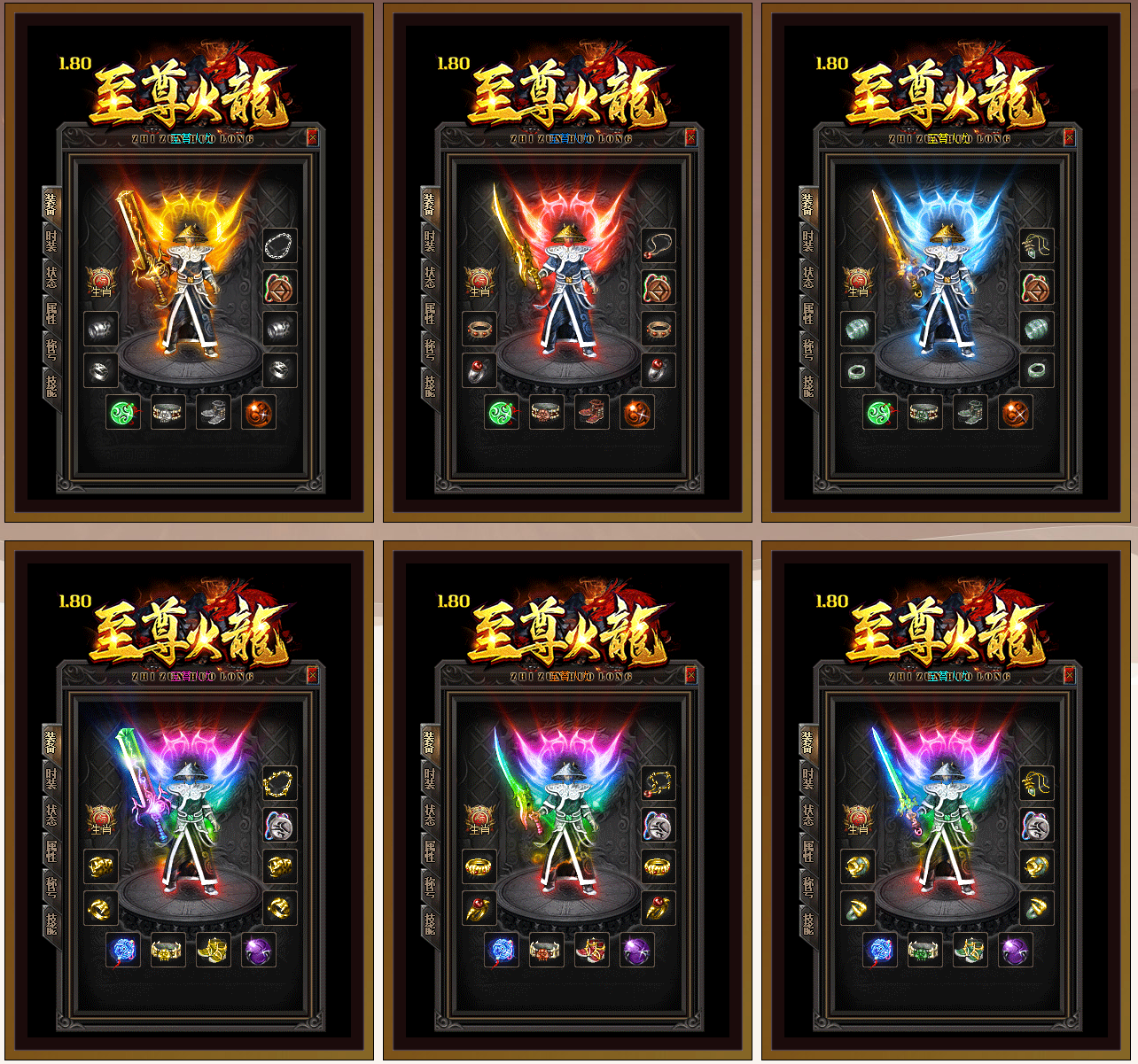 装备介绍:[赤月系列].[雷霆系列].[强化系列].[战神系列].[火龍系列].[终极系列](剑甲只能靠打)