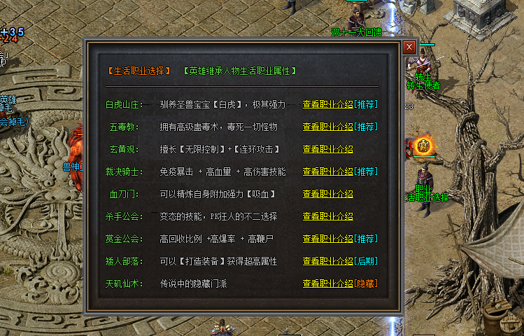 【生活职业】:注:除白虎外,其它所有生活职业属性英雄都可继承