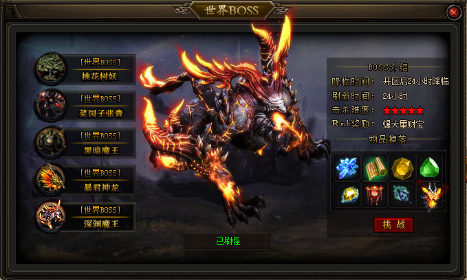 金币获得唯一途径就是打怪、BOSS爆金条多