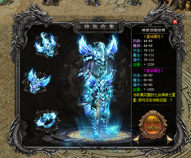 2.神装收集可以获得大量装备单件属性,装备套装属性,元宝奖励