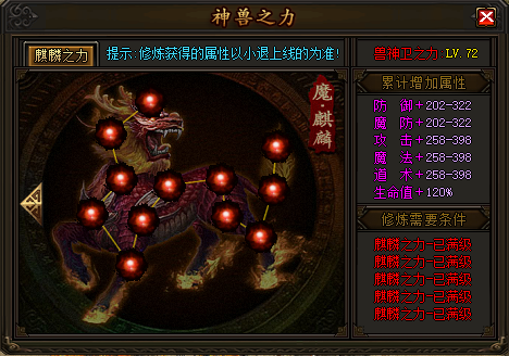 4.神兽之力升级会获得大量攻魔道双防生命值