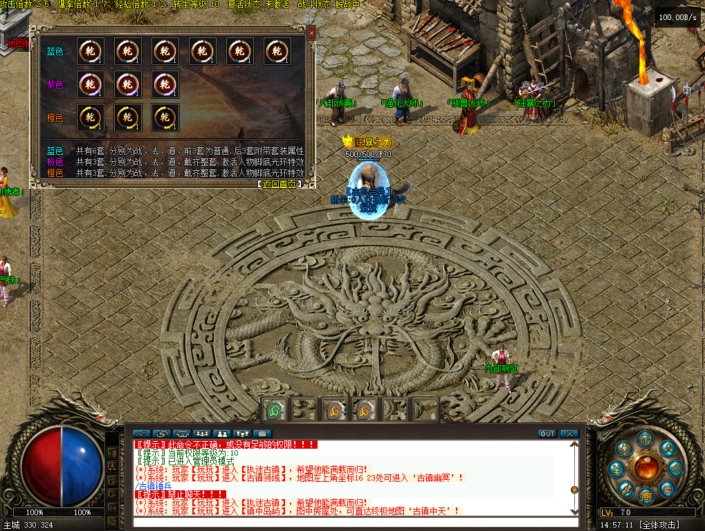强壮的神兽--50到52级召唤1只。通过八卦火麒麟套装,可额外召唤1只。(注:此神兽凑齐火麒麟6件,可49级召唤)