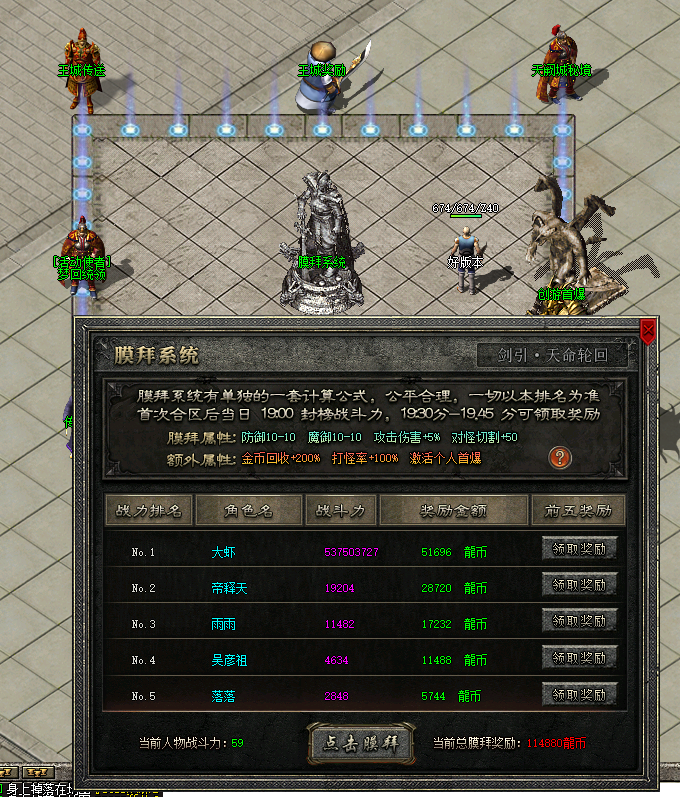 激活个人首爆!!!!合区后按战力排行获取奖池龍币